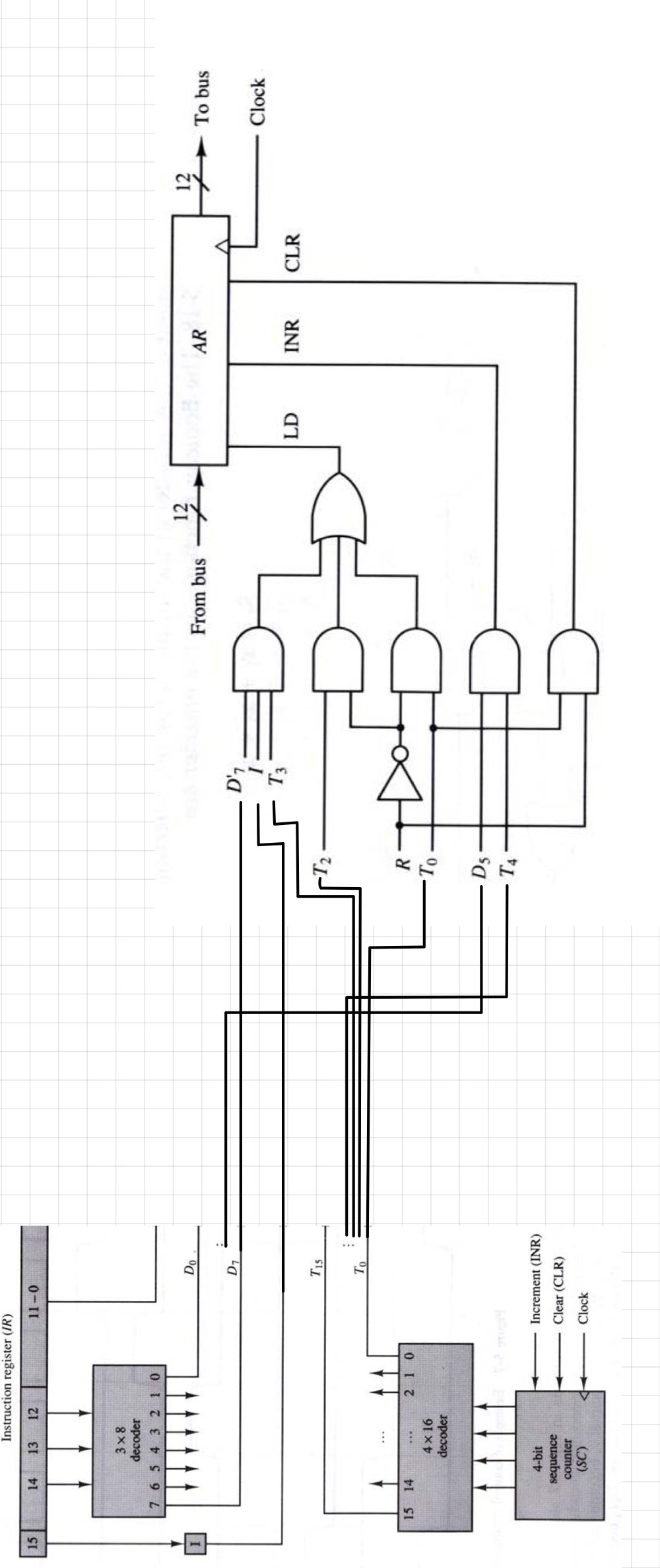 이런식으로 해당 레지스터를 변경시키는 모든 수식을 가져오고 그 변경된 값을 LD, INR, CLR로 분리하여 논리 게이트를 만들 수 있다.
