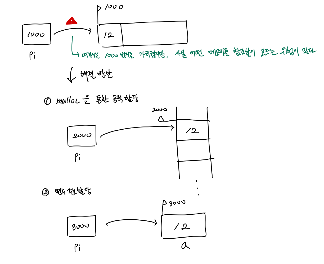pi = malloc(sizeof(int)); // wild pointer의 해결방안 1 - malloc(동적 할당: heap 영역)