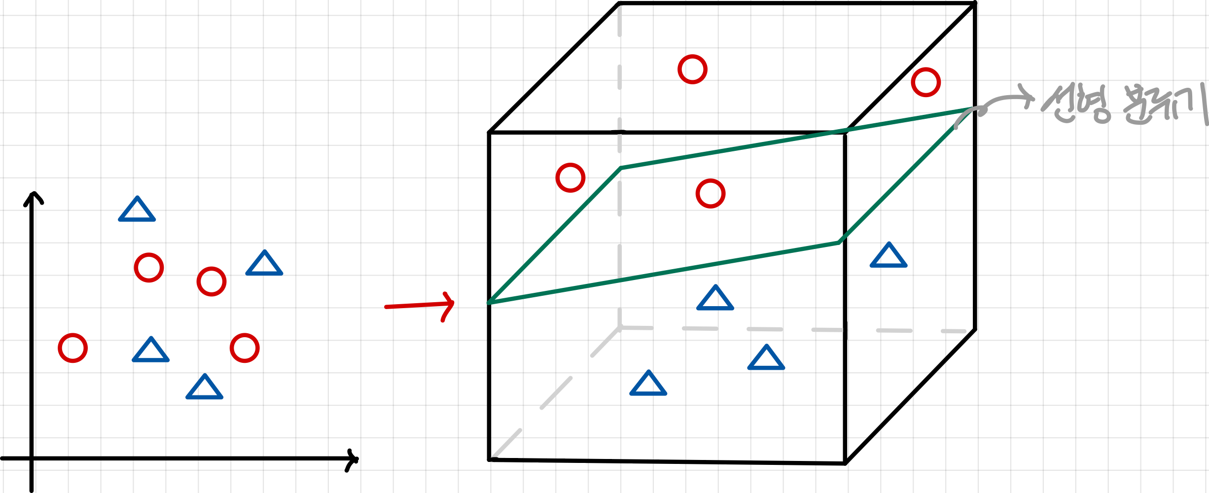 선형 분류의 단점은 당연하게도 비선형 분류가 어렵다는 점이다.