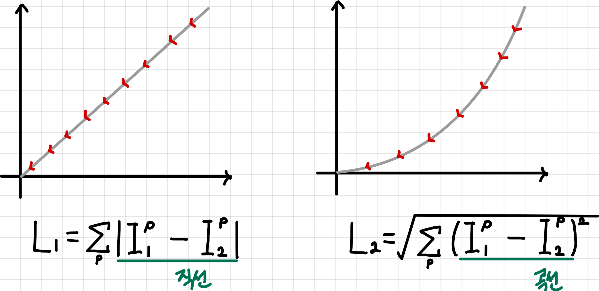 해당 부분은 L1, L2 각각의 공식을 그래프화 해보면 된다.