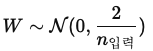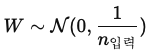우선 해당 수식은 0이 평균이고 1/n 또는 2/n이 분산이다.