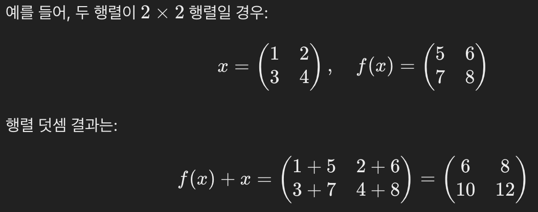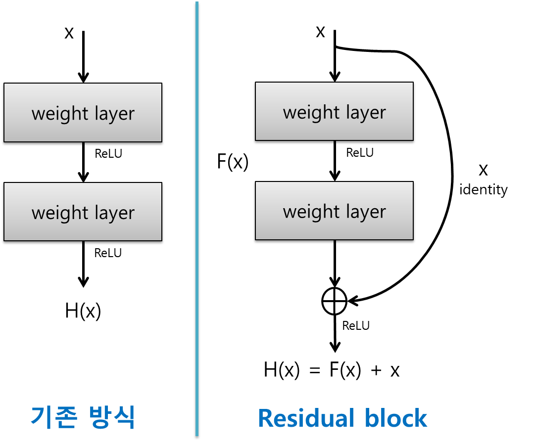 따라서 원본의 데이터 x를 유지한 채로 변환된 값을 더해줌으로써, 데이터의 중요한 특징을 잃지 않고, 네트워크가 깊어지더라도 기울기 소실 문제를 해결할 수 있다.