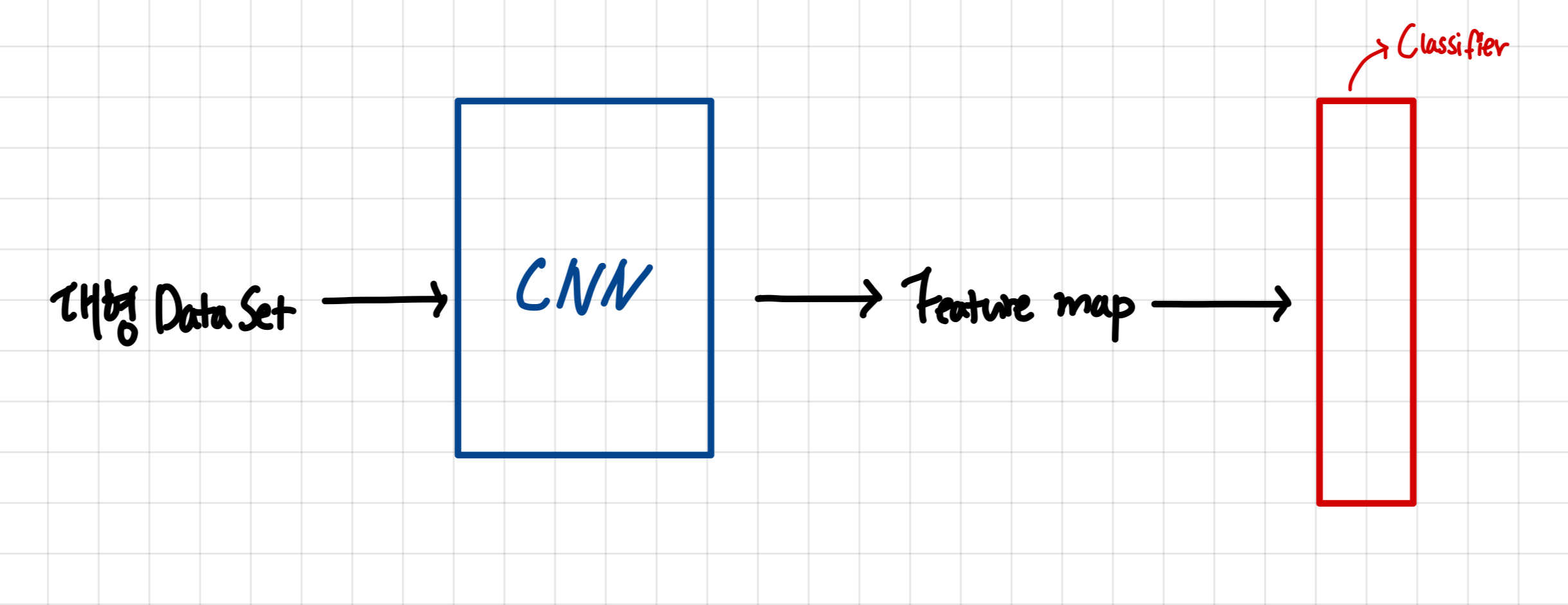 하지만 우리가 실제로 필요한 10개라고 했을 때 1000개의 클래스가 아닌 10개의 클래스가 필요하다. 그랬을 때는 모든 학습을 다시 하는 것이 아니라 뒤에 있는 Classifier만 다시 학습해서 대형 Data Set을 통해서 나온 Feature map은 유지하되, Classifier만 다시 학습시킨다.