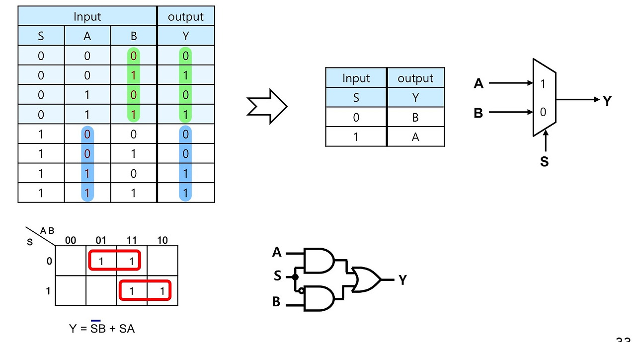 - S의 값에 따라 어떤 입력을 선택할지 결정된다.