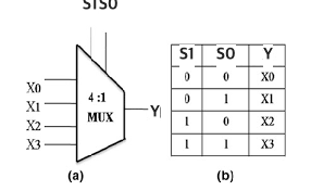 (a)는 4 x 1 Mux의 심볼, (b)는 4 x 1 Mux의 Funtion Table이다.