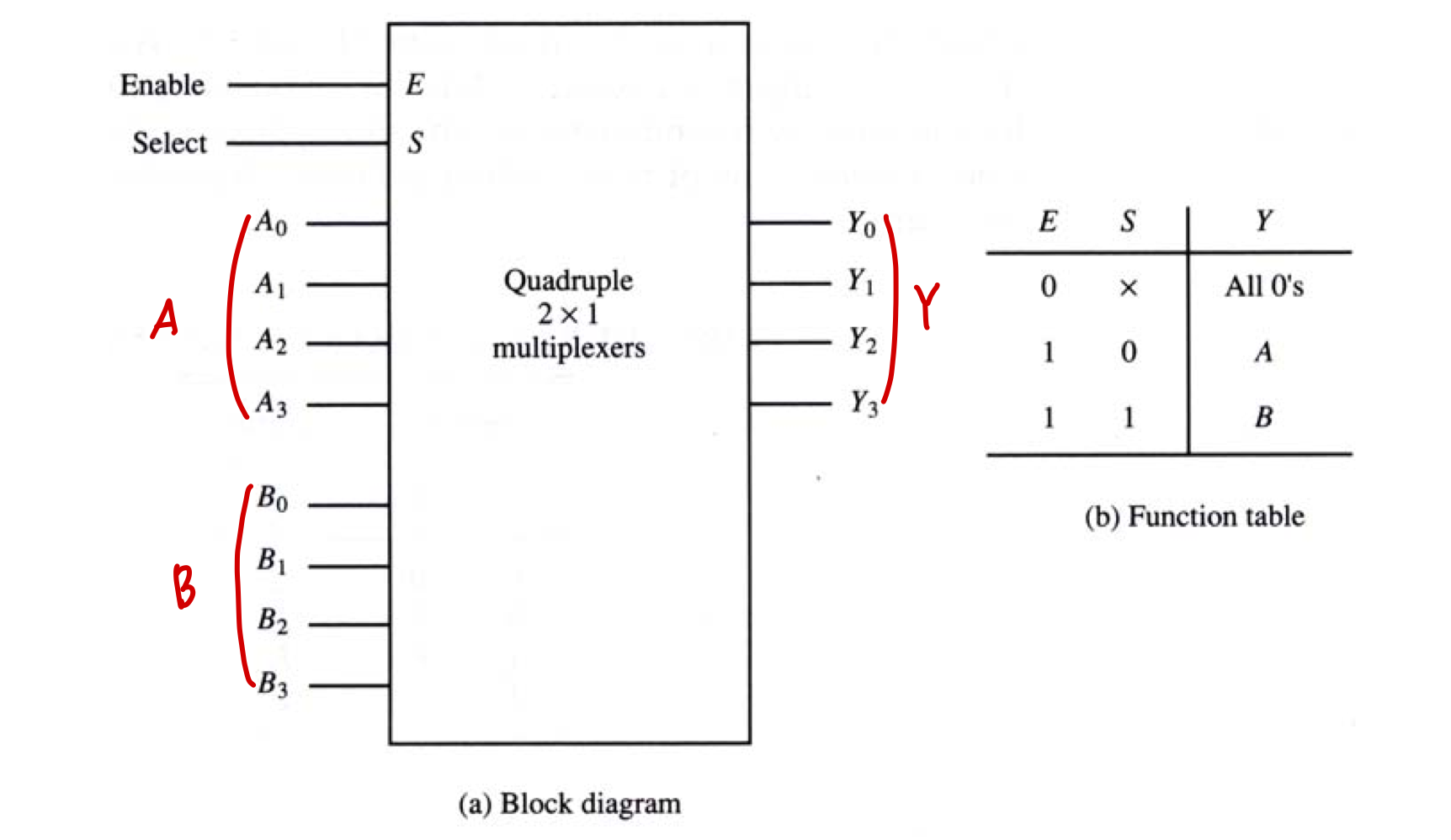 Enable이 1이고, Select가 1이면 B0, B1, B2, B3가 Y0, Y1, Y2, Y3로 연결된다.