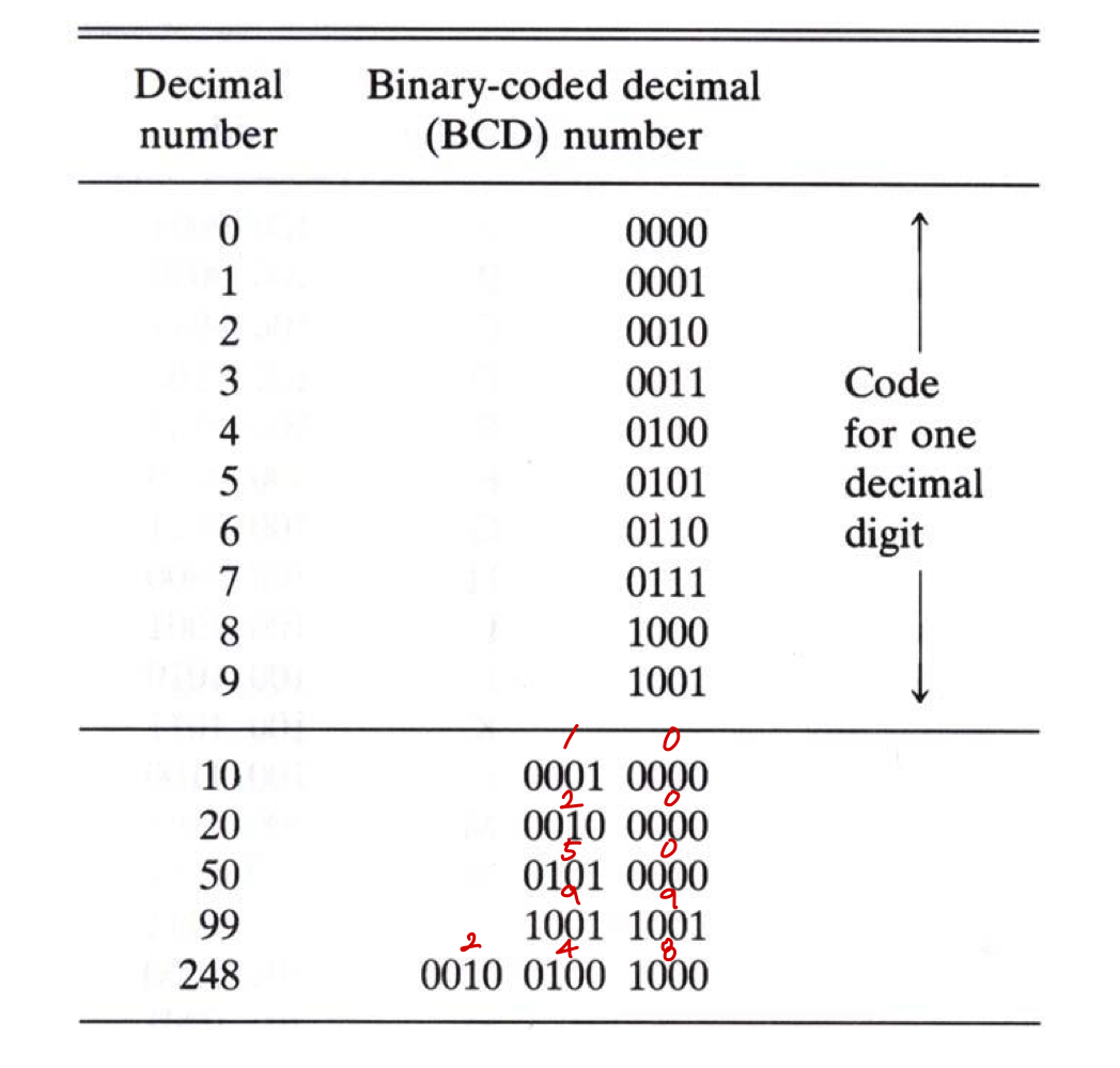 : 10진수의 각 숫자를 4bit 2진수로 개별적으로 인코딩하는 방식