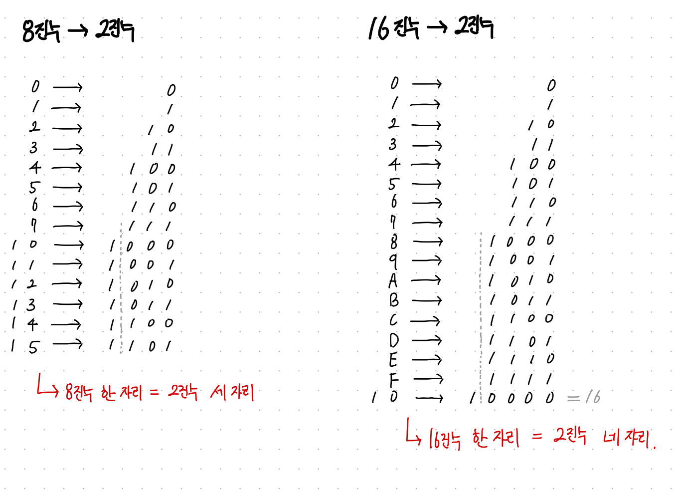 8진수 ➡️ 2진수 / 16진수 ➡️ 2진수