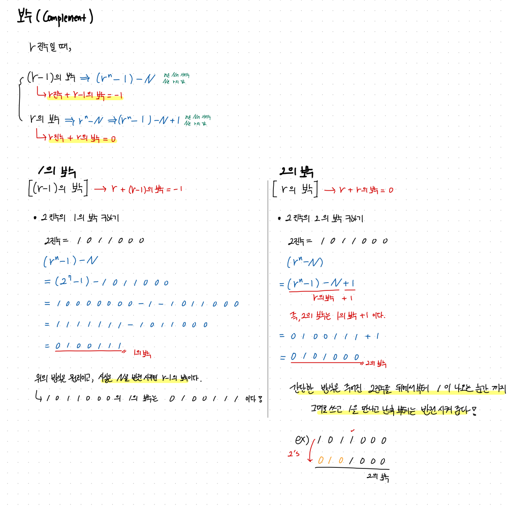 위의 정리에서도 작성된 내용이지만 r이 2. 즉, 2진수의 보수를 구한다고할 때