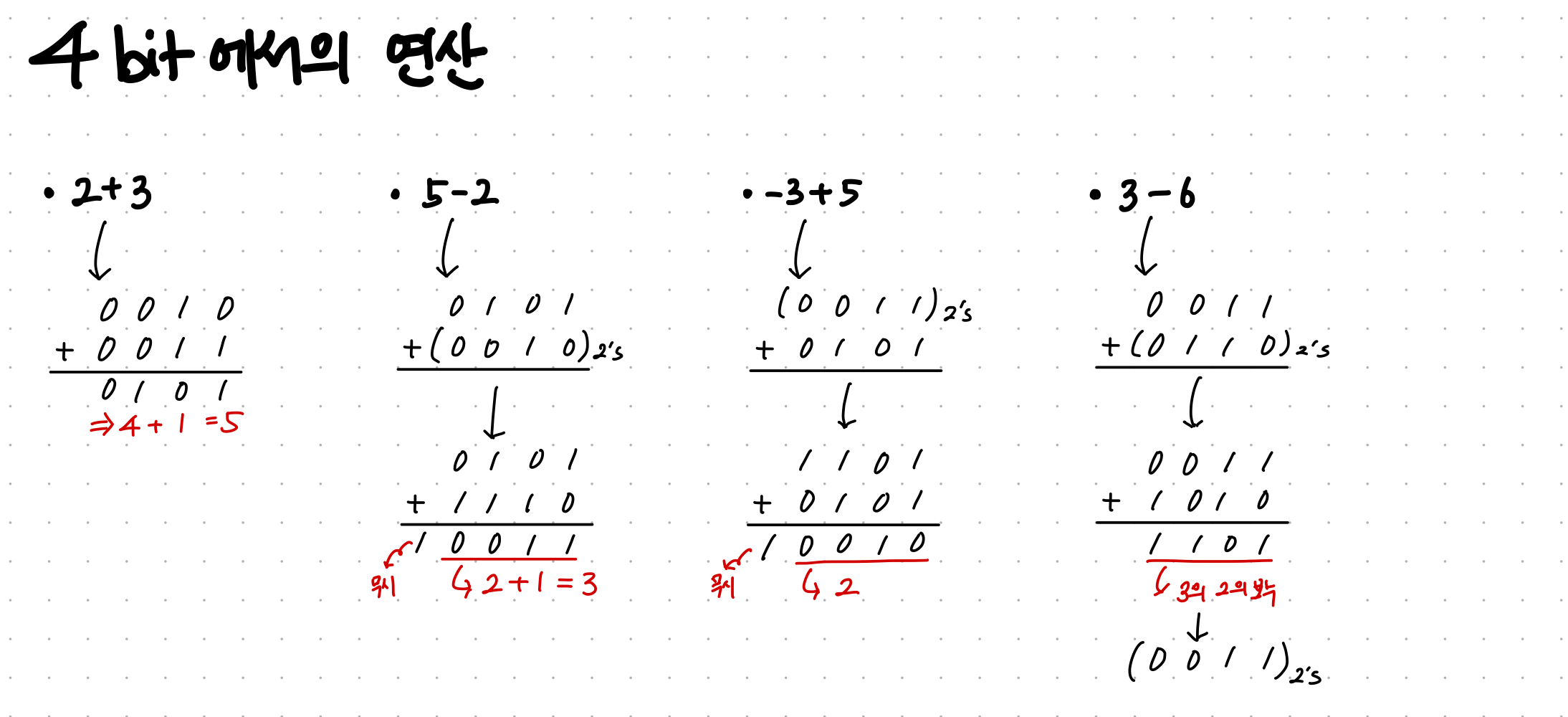 - 2의 보수 + 2진수 = 0