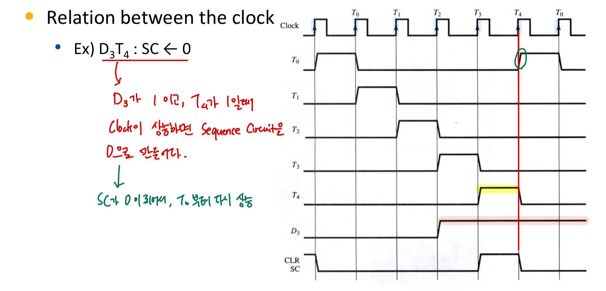 : 명령어를 순차적으로 실행하기 위해 클럭과 연결된 시퀀스 카운터를 사용해서 제어 신호를 생성한다.