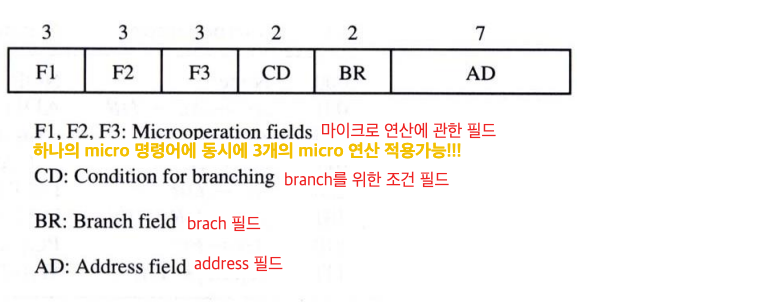 Micro 명령어의 format - Control Memory에 적재되는 명령어(20bit)