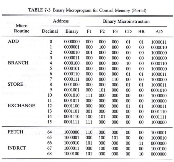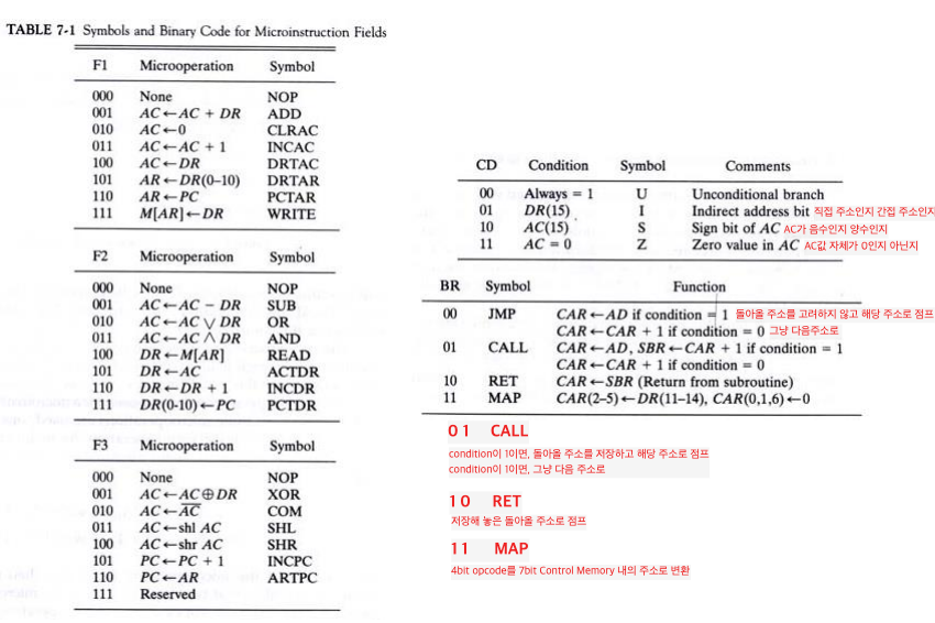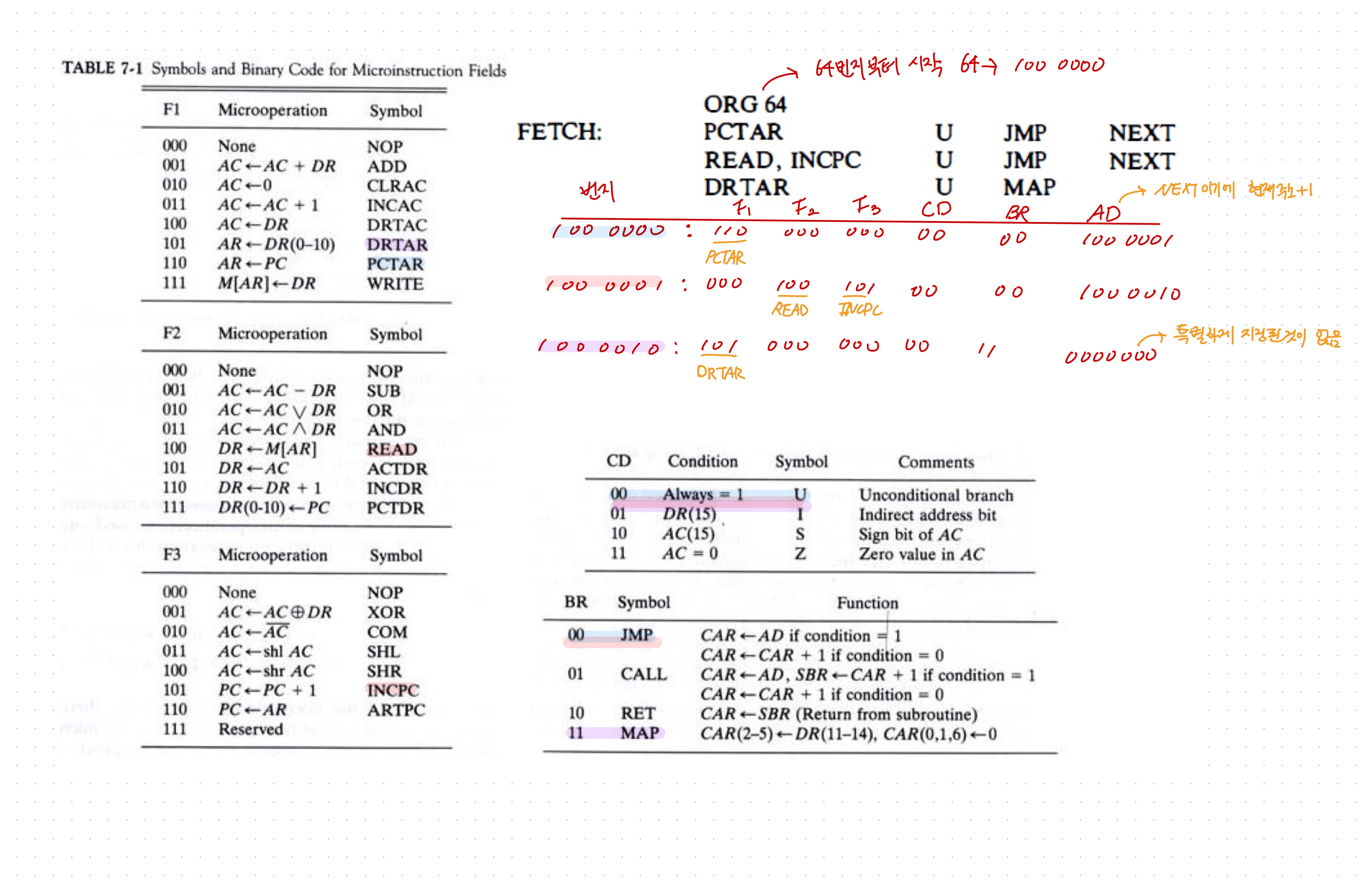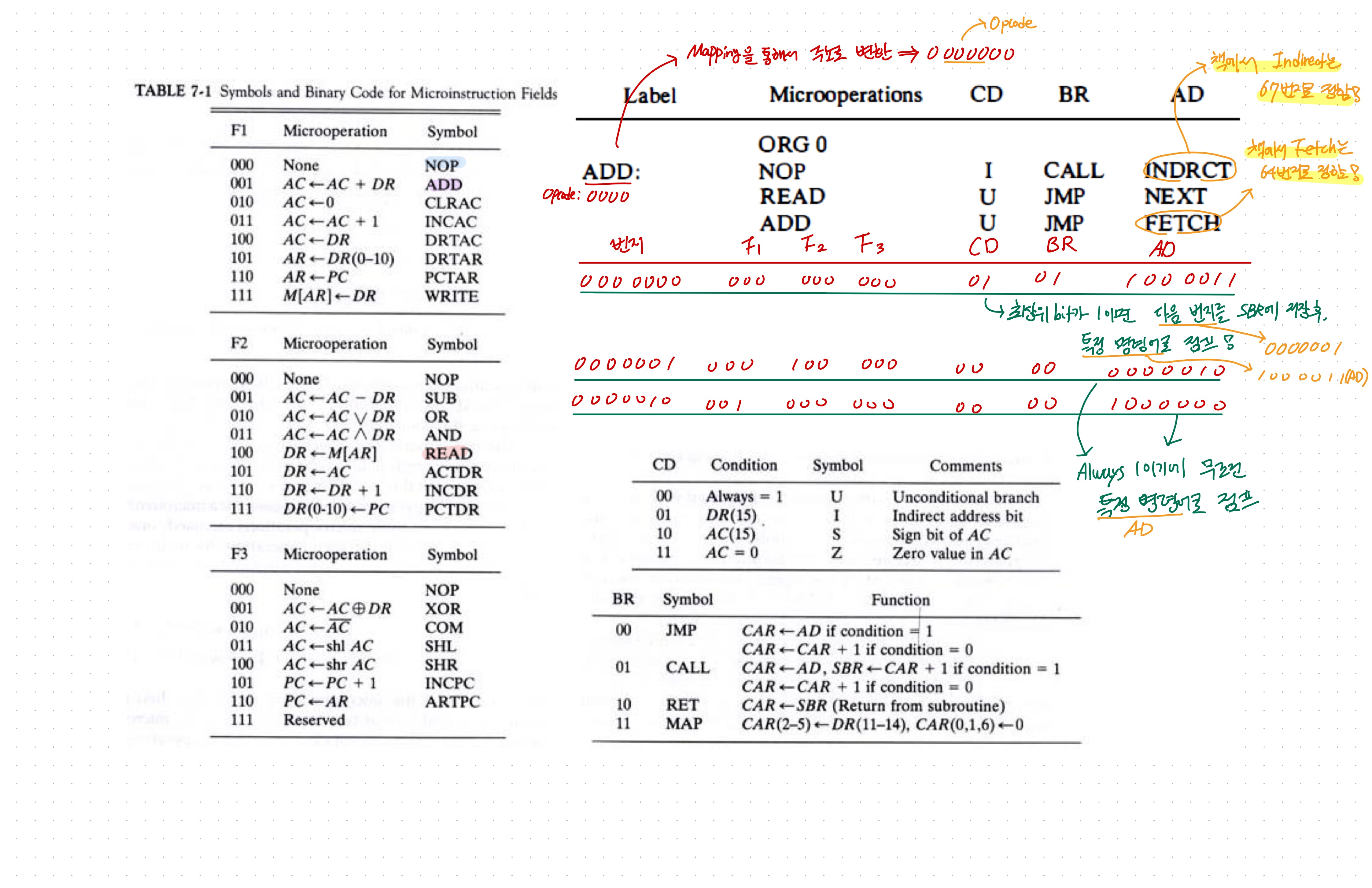 Opcode로 Control Memory의 주소로 변환하는 과정인 mapping을 각 Opcode에 하면 아래와 같다.