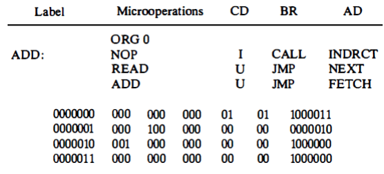 micro program의 연산과 실행 로직(fetch 등)의 binary 버전