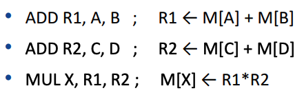 별도의 중간 저장 없이 직접 연산이 가능해서 명령어 개수를 줄일 수 있다는 장점이 있지만, 각 명령어가 세 개의 주소를 포함하기 때문에 명령어 길이가 더 길어진다는 단점이 생긴다.