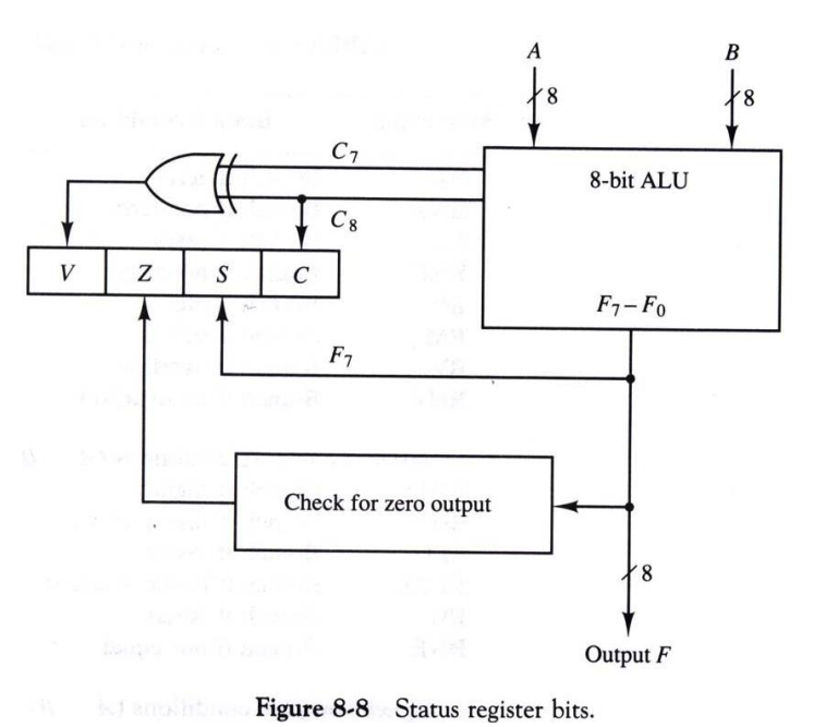 - V(Overflow) : 올바은 범위를 초과했을 때 설정 - XOR(C₇, C₈) = 1 -> 즉, 마지막 Carry와 그 전 Carry의 값이 다르면, Overflow이다.