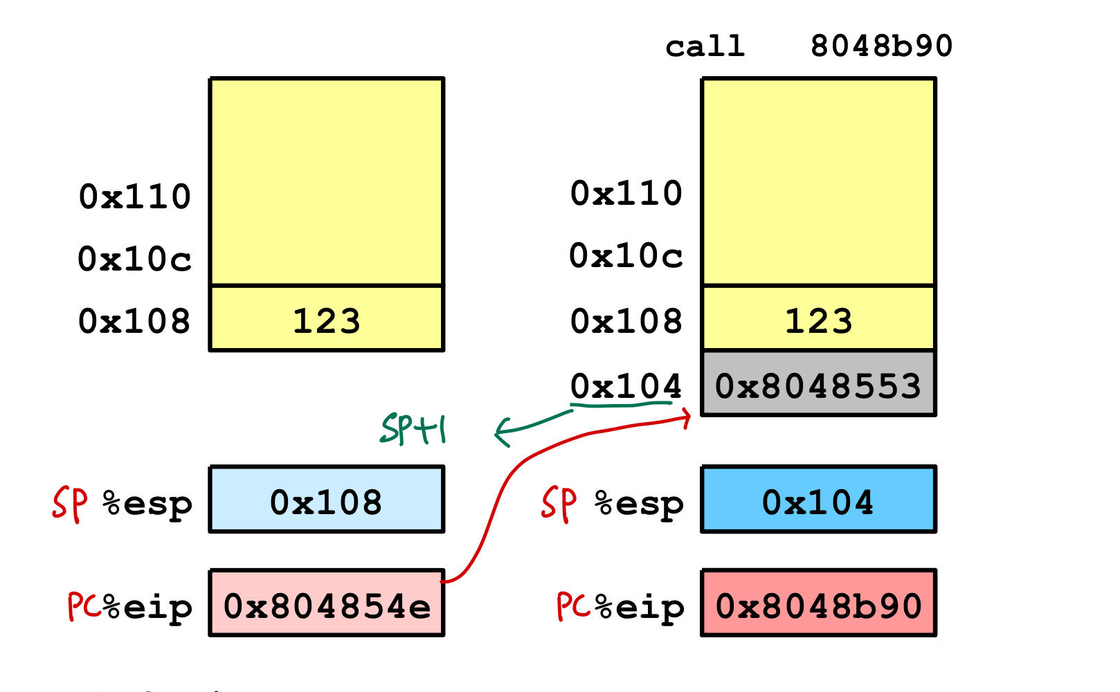 - subroutine 호출 시, PC는 현재 명령어 이후 실행해야할 다음 명령어를 임시 저장소에 저장