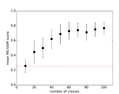 따라서, Inception Score를 통해서 전체 데이터의 분포와 이미지의 다양성을 측정하고, MS-SSIM을 이용해서 각 이미지의 품질을 측정한다.