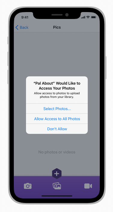 시스템은 사람들이 개인 정보 또는 보호된 리소스에 대한 액세스 요청을 볼 수 있도록 하는 표준 경고를 제공한다. 앱에 항목이 필요한 이유에 대한 설명을 제공하면 시스템이 경고에 이 설명을 표시한다. 사람들은 설정 > 개인 정보 보호에서 설명을 보고 선택 항목을 업데이트할 수도 있다.