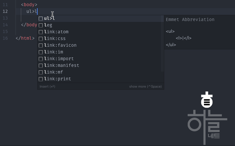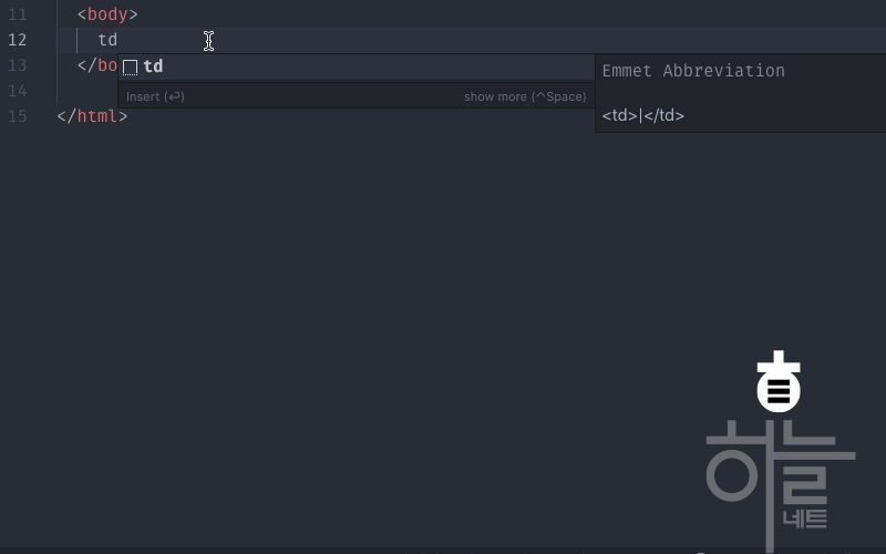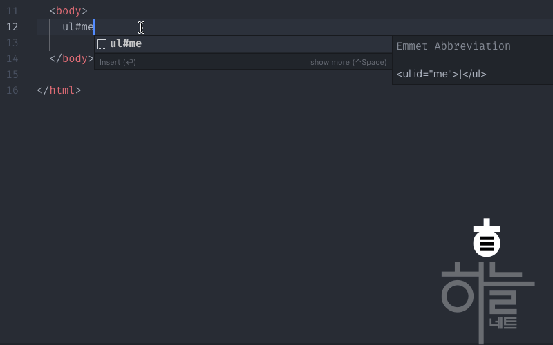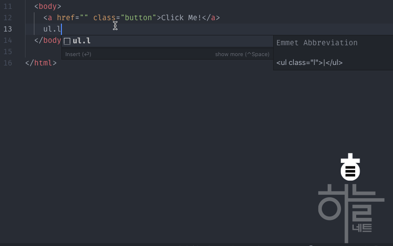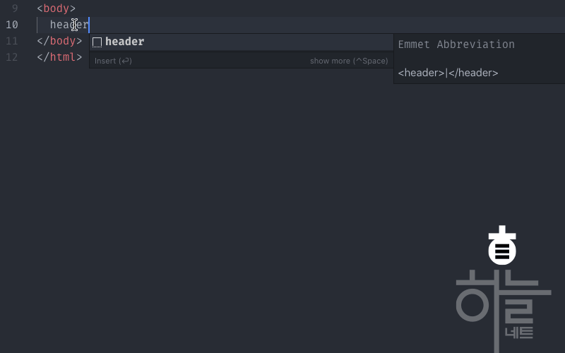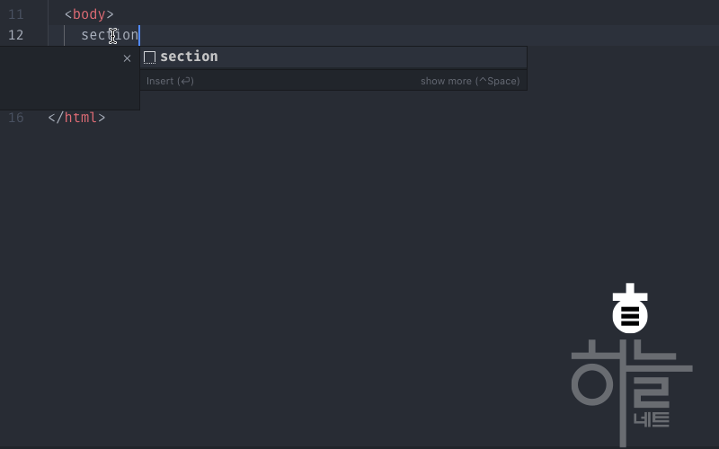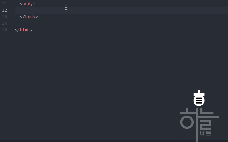 "!"치고 "tab" 또는 HTML 입력후 HTML5 선택