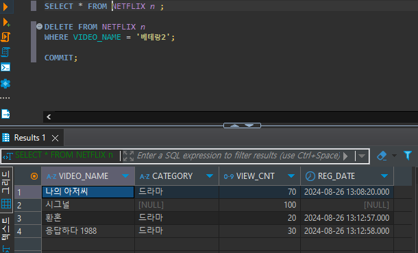 -- -> WHRER CATEGORY = '드라마' AND VIEW_CNT < 35 이렇게 작성할 수 있다.