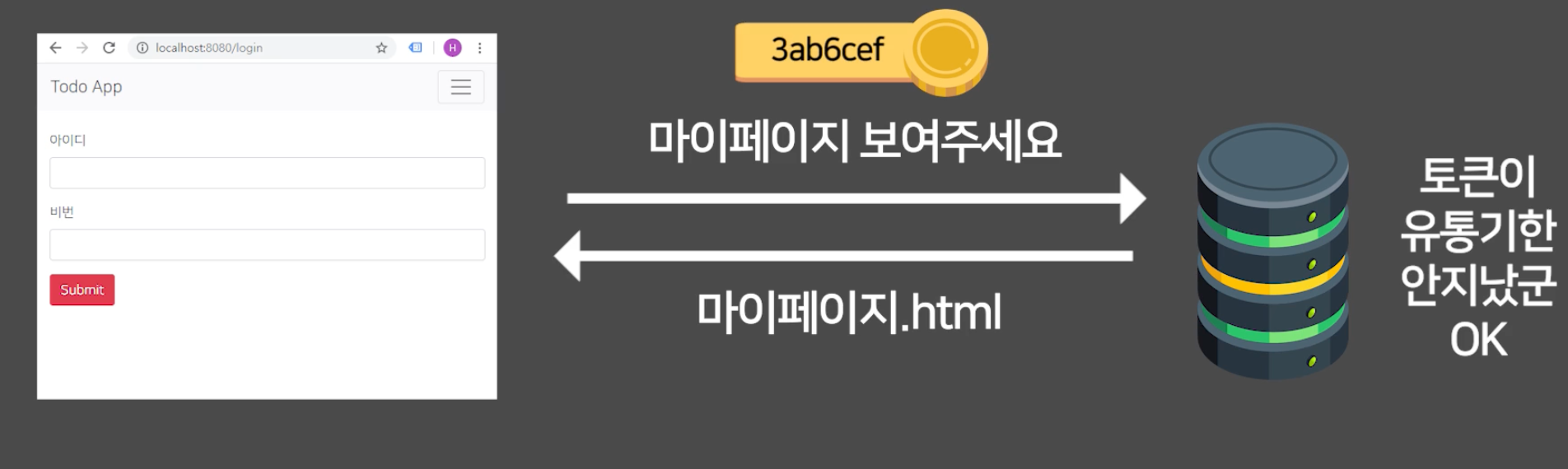 마이페이지를 열람할 수 있는 열쇠(토큰)을 사용자에게 주는 것