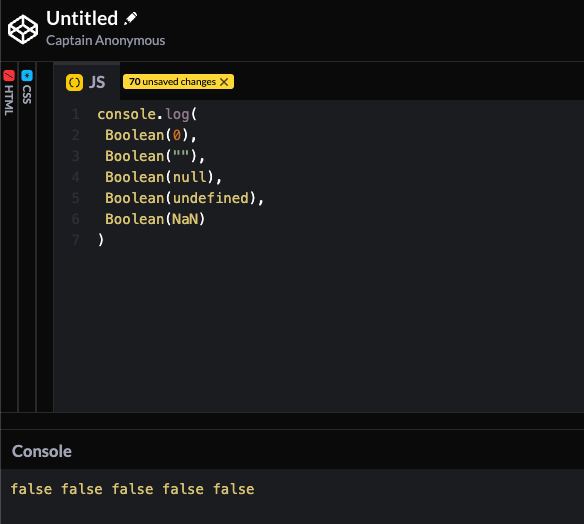- boolean은 아래의 값들만 기억하면 된다. 해당 값들을 제외하고는 모두 true이기 때문이다.