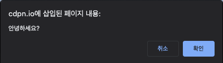 - alert: 알려줌 (사용자와 상호작용보다는 통보느낌)