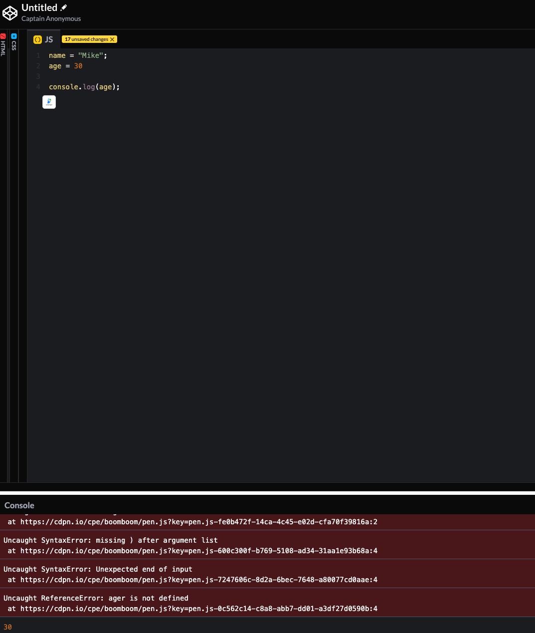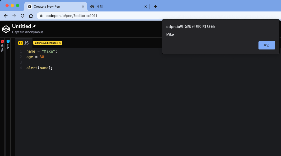 변수를 선언할 때는 ;를 마지막에 사용해주어야한다.