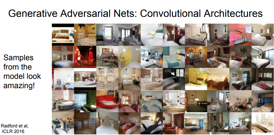 : Generative Model을 사용하면 예술 작품, 고해상도 이미지 생성, 채색 등과 같이 실제와 유사한 샘플을 만들어 낼 수 있다.