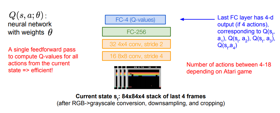 - 위의 사지네서는 4개의 이미지를 쌓아놓은 형태을 입력으로 넣었는데, 예를 들면 게임 화면이 현재 상태라면, 4장의 게임 화면이 입력으로 들어간다.