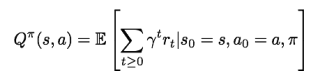 이 수식에서 s는 현재 상태이며, a는 현재 Action을 의미하며, 이 Action 이후에도 계속 정책 π∗를 따라 움직이면서 얻을 보상의 총합을 구한다.