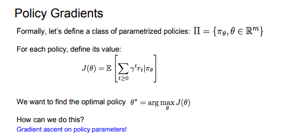 따라서 모든 state와 action 쌍들을 학습을 하는 것이 아니라, Policy를 활용해서 더 간단하게 해결하자라는게 Policy Gradient의 아이디어이다.
