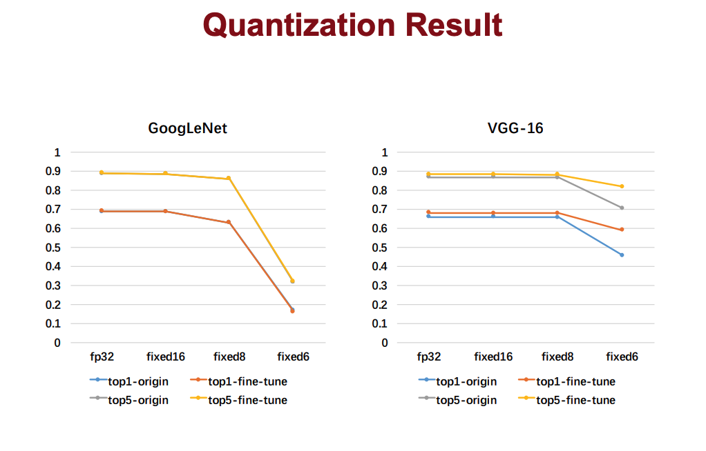 : 가중치와 활성화 값을 표현할 때 비트 수를 줄이는 방식이다. 일반적으로는 32bit로 표현되는 가중치 값을 8(16)bit로 줄여서 저장하고 연산하게 된다. 이를 통해 메모리 사용량을 줄이고 연산속도를 높일 수 있다.