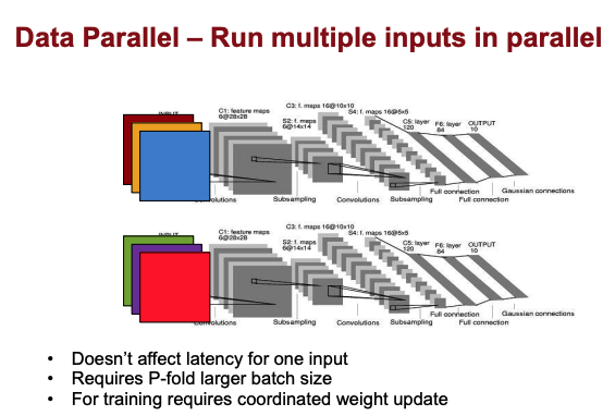 - 모델 병렬화: 네트워크를 여러 장치로 나눠서 처리. 복잡한 네트워크의 경우 모델의 일부를 분할해 각기 다른 프로세서에 할당한다.