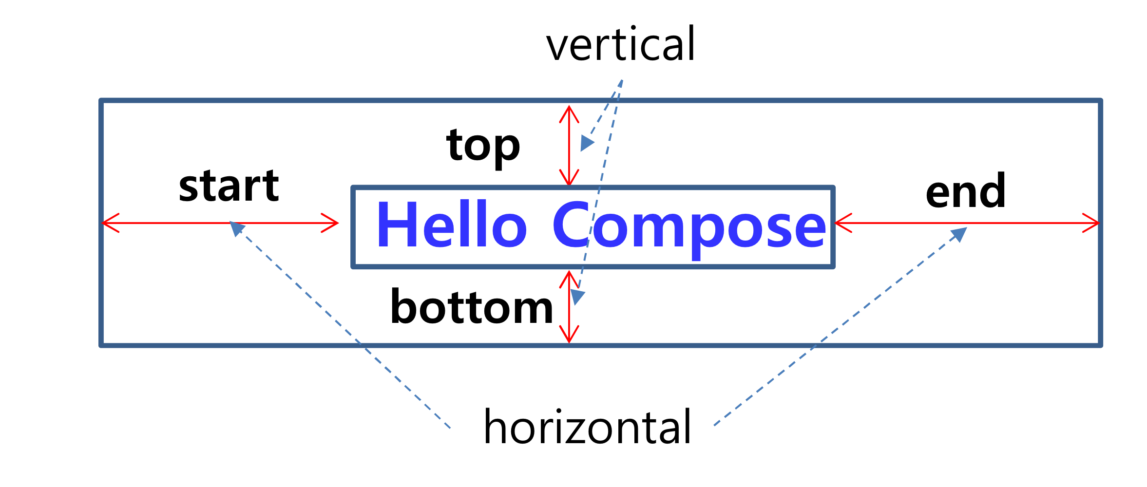 : padding의 속성에서는 start(왼), end(오), top(위), bottom(아래), horizontal(좌우), vertical(상하)이 있다.