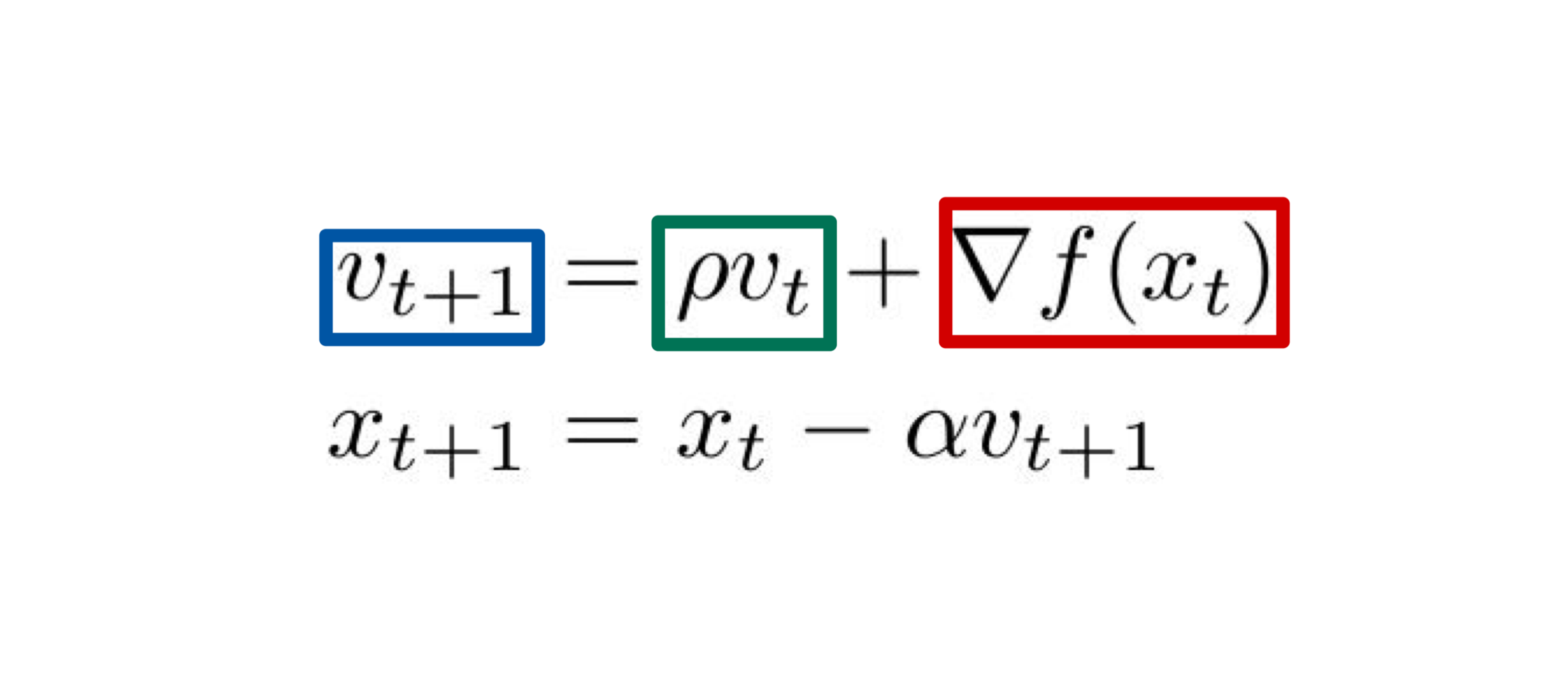 모멘텀을 추가한 경사하강법은 아래와 같다.