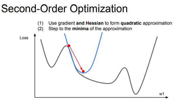 그래서 학습률이라는 파라미터로 그 이동 거리를 결정한다. 하지만 2차 최적화는 기울기와 곡률(Hessian)을 모두 사용해서 가야할 방향과 속도를 한번에 결정할 수 있다.