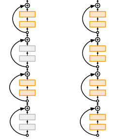 깊은 신경망(Deep Neural Network)에서는 여러 레이어(층)이 있다. Stochastic Depth는 학습할 때 일부 레이어를 랜덤하게 생략하는 방식이다.