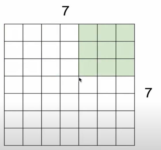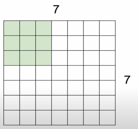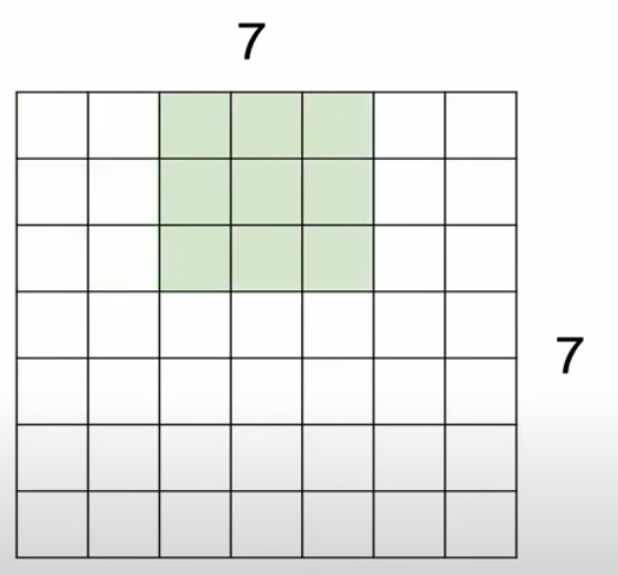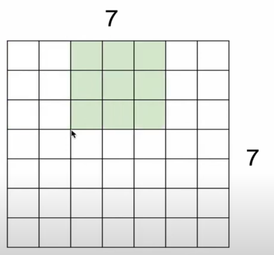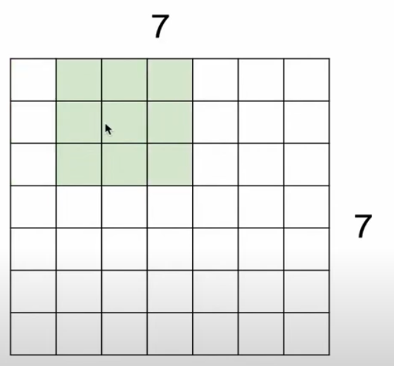 예를 들어 이미지 크기가 7x7이고, 필터의 크기가 3x3인 경우를 보자.