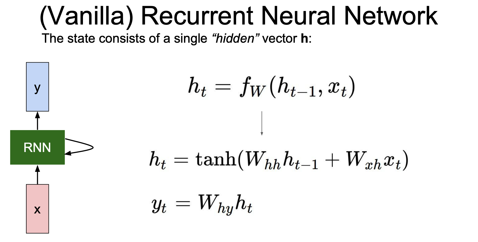 새로운 상태 Ht : 현재 시간 t에서의 새로운 상태는 함수 fw를 통해서 계산된다. 이 함수는 매개변수로 W를 사용해서 이전 상태Ht-1과 현재 입력 벡터 Xt를 결합한 후 새로운 상태 Ht를 출력한다.