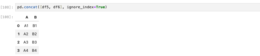 concat은 index 중복여부를 검사하지 않는다. 이런 경우 verify_integrity=True를 통해서 인덱스가 겹치는 경우 오류 출력을 하거나 다른 방식으로 해결할 수 있다.