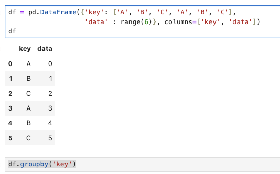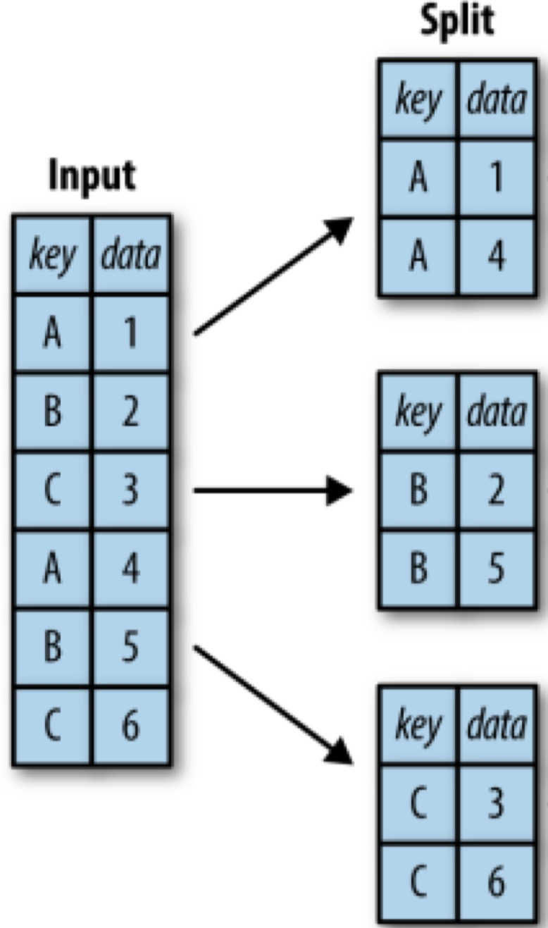 이런 식의 데이터가 있을 때, key를 기준으로 split을 한다면 아래와 같이 같은 키를 가진 행끼리 나누어 진다.