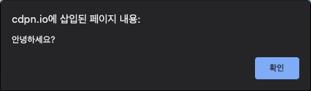 - alert: 알려줌 (사용자와 상호작용보다는 통보느낌)